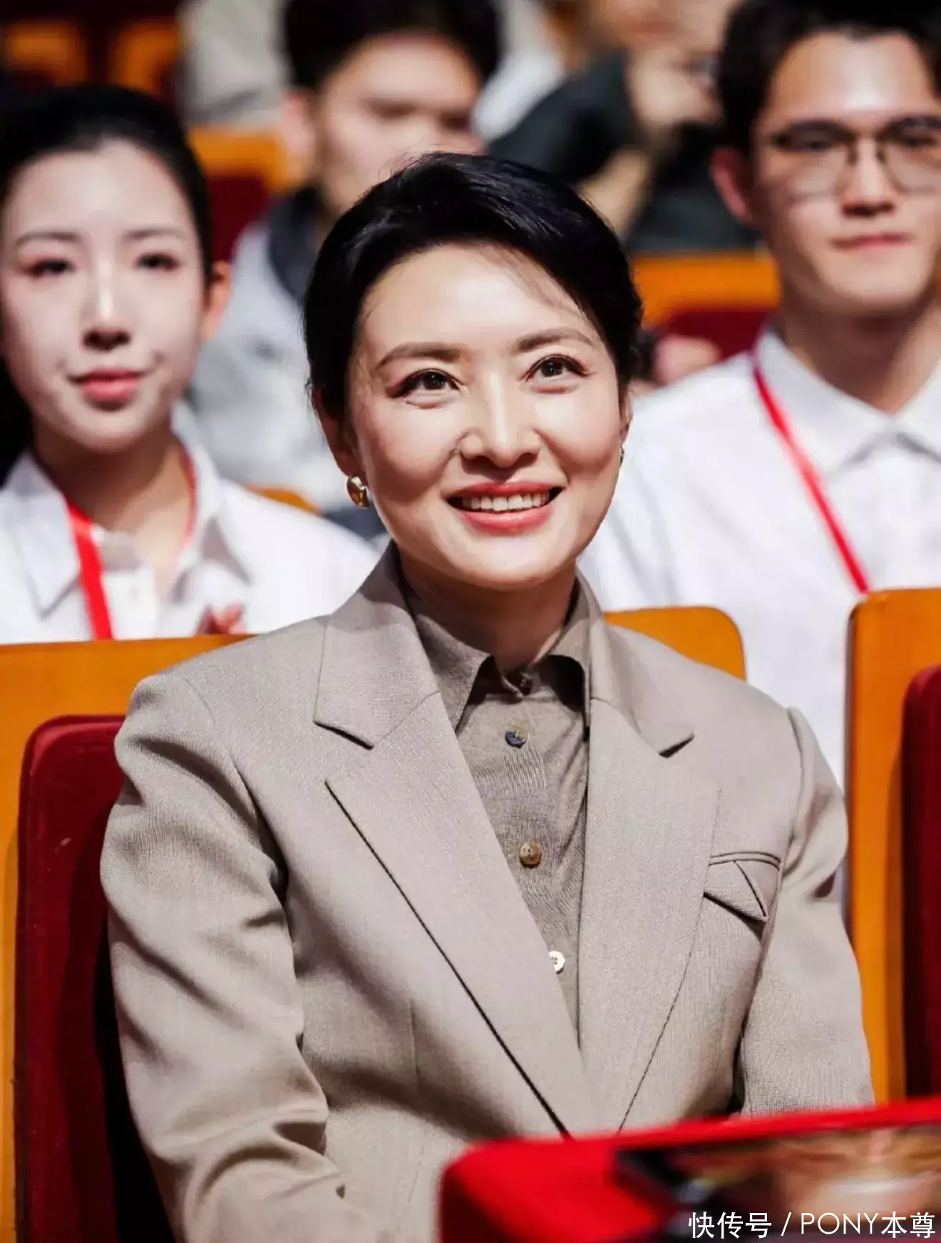 除了日常休闲穿搭,周涛的西装造型也极具借鉴意义。她选择的浅棕色西装,色调柔和不张扬,比黑色西装更显温柔,适配中老年女性的气质;同色系针织衫作为内搭,打造出顺色穿搭的高级感,整体造型和谐统一,尽显从容优雅。